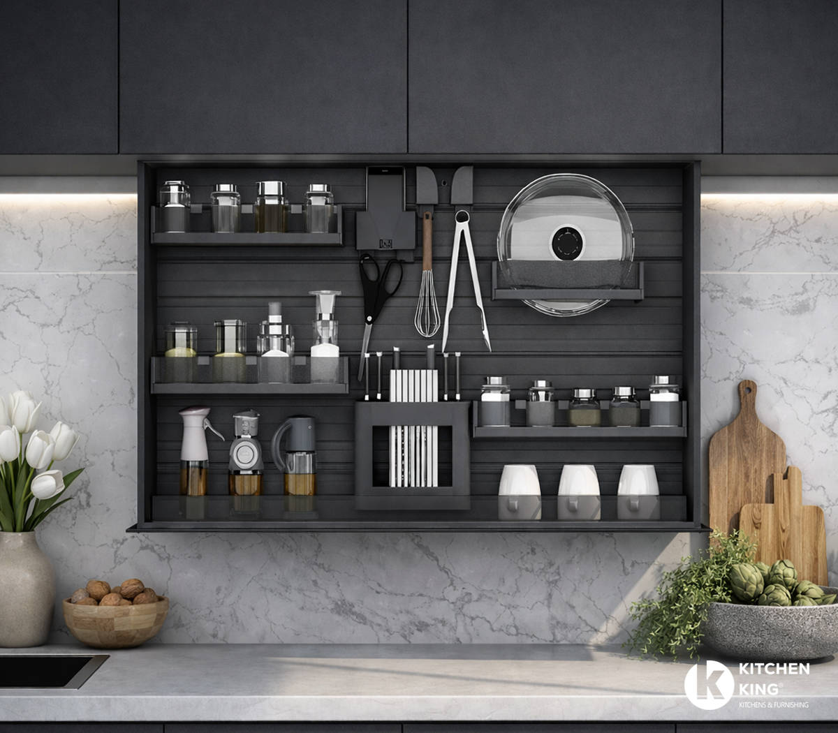 - يمكن للمنتج حمل جميع أنواع المعلقات بالمطبخ